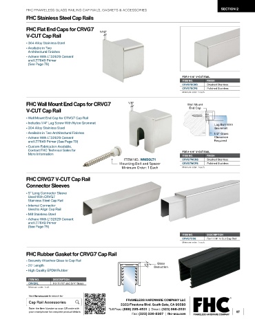FHC FRAMELESS GLASS RAILING CAP RAILS, GASKETS & ACCESSORIES SECTION 2
