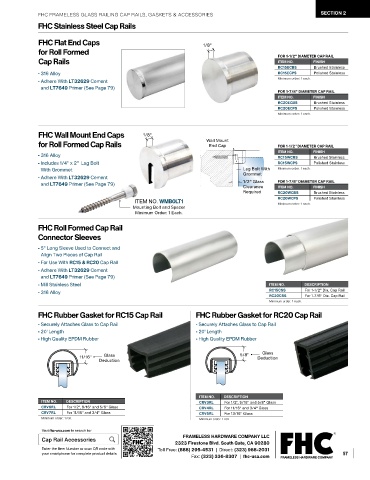 FHC FRAMELESS GLASS RAILING CAP RAILS, GASKETS & ACCESSORIES SECTION 2 RC20