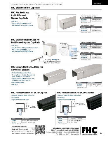 FHC FRAMELESS GLASS RAILING CAP RAILS, GASKETS & ACCESSORIES SECTION 2