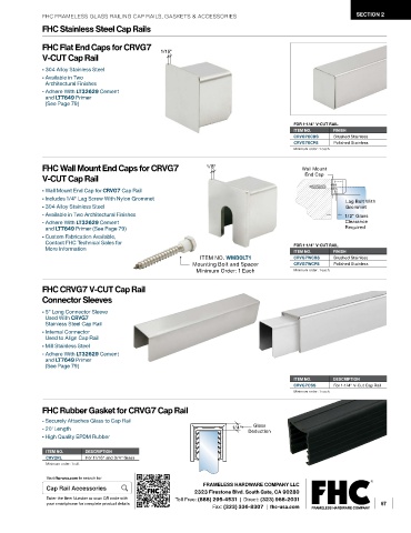 FHC FRAMELESS GLASS RAILING CAP RAILS, GASKETS & ACCESSORIES SECTION 2