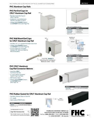 FHC FRAMELESS GLASS RAILING CAP RAILS, GASKETS & ACCESSORIES SECTION 2