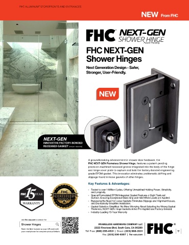FHC NEXT-GEN Frameless Shower Hinge, features a patent-pending