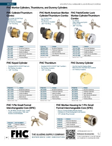 FHC Cylinder/Thumbturn FHC North American Mortise FHC Patch/Center Lock