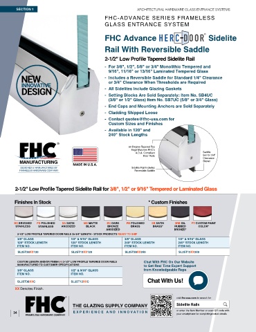 CUSTOM LENGTH AND/OR FINISH ( ) 2-1/2" LOW PROFILE TAPERED DOOR RAILS Chat With FHC On Our Website