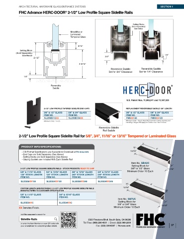 FHC Advance HERC-DOOR 2-1/2" Low Profile Square Sidelite Rails