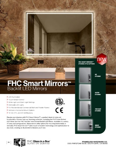 vertically. FHC Smart Mirrors™ add a touch of modern technology and sophistication to INNER