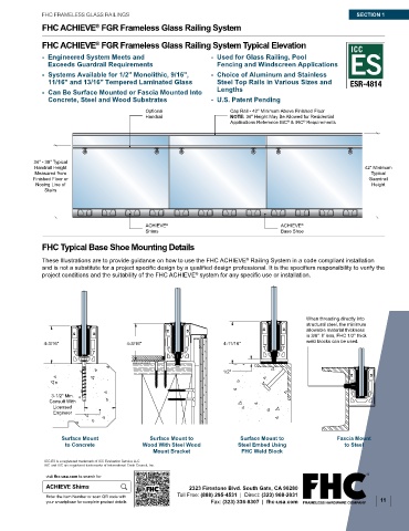 FHC ACHIEVE FGR Frameless Glass Railing System Typical Elevation ICC