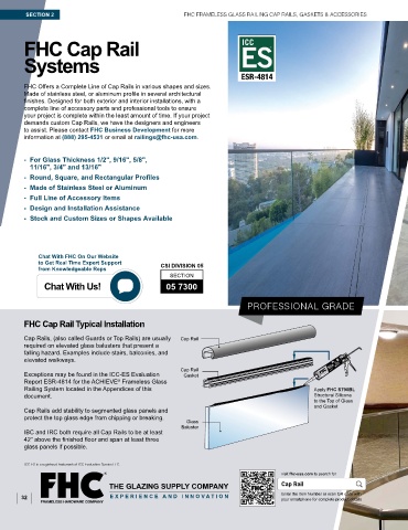 SECTION 2 FHC FRAMELESS GLASS RAILING CAP RAILS, GASKETS & ACCESSORIES