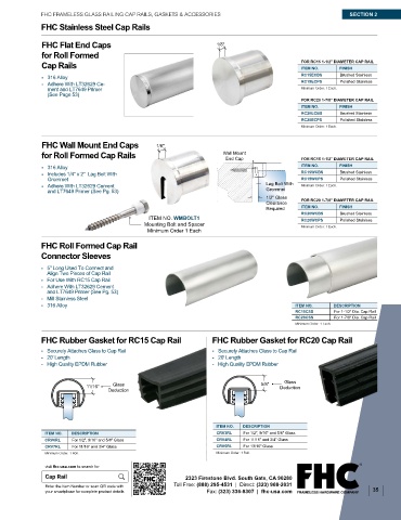 FHC FRAMELESS GLASS RAILING CAP RAILS, GASKETS & ACCESSORIES SECTION 2 RC20