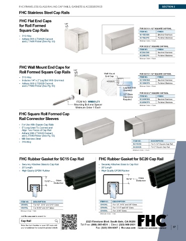 FHC FRAMELESS GLASS RAILING CAP RAILS, GASKETS & ACCESSORIES SECTION 2