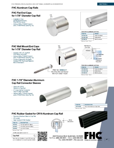 FHC FRAMELESS GLASS RAILING CAP RAILS, GASKETS & ACCESSORIES SECTION 2