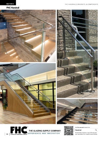 SECTION 5 FHC HANDRAILS, BRACKETS, & COMPONENTS FHC Handrail Visit fhc-usa.com to search for THE GLAZING SUPPLY COMPANY Handrail 112 EXPERIENCE AND INNOV A TION Enter the Item Number or scan QR code with your smartphone for complete product details