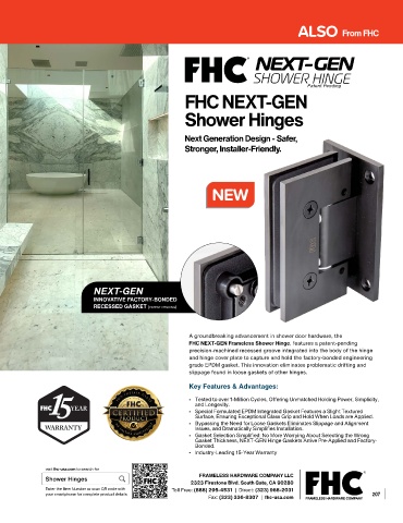FHC NEXT-GEN Frameless Shower Hinge, features a patent-pending
