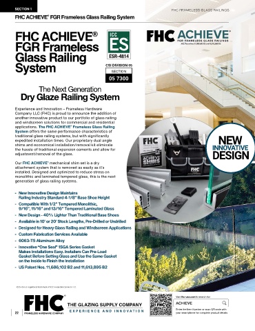 applications. The FHC ACHIEVE Frameless Glass Railing