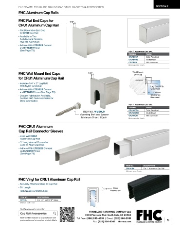 FHC FRAMELESS GLASS RAILING CAP RAILS, GASKETS & ACCESSORIES                                 SECTION 2