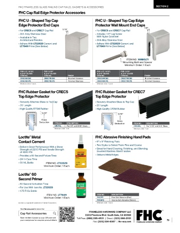 FHC FRAMELESS GLASS RAILING CAP RAILS, GASKETS & ACCESSORIES SECTION 2