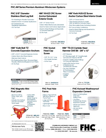 FHC 3/8" Diameter Hilti KH-EZ CRC Screw Hilti Kwik HUS-EZ Screw